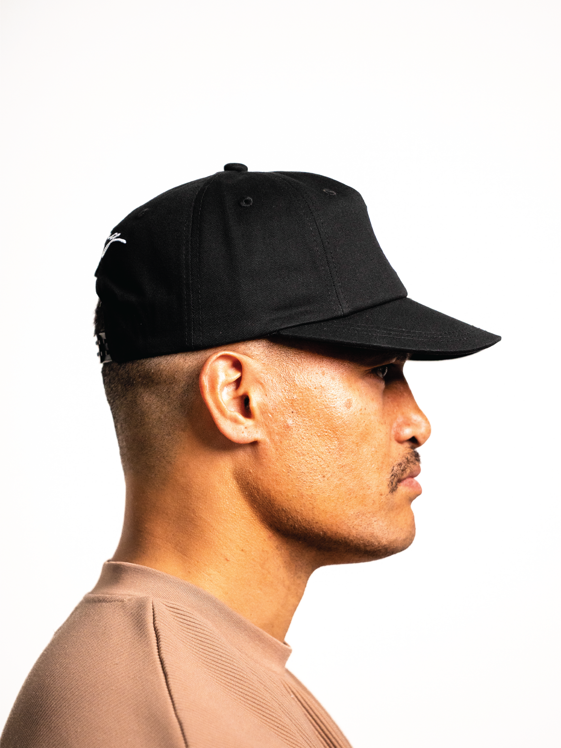 Mid profile five panel snapback cap with embroidery logos.