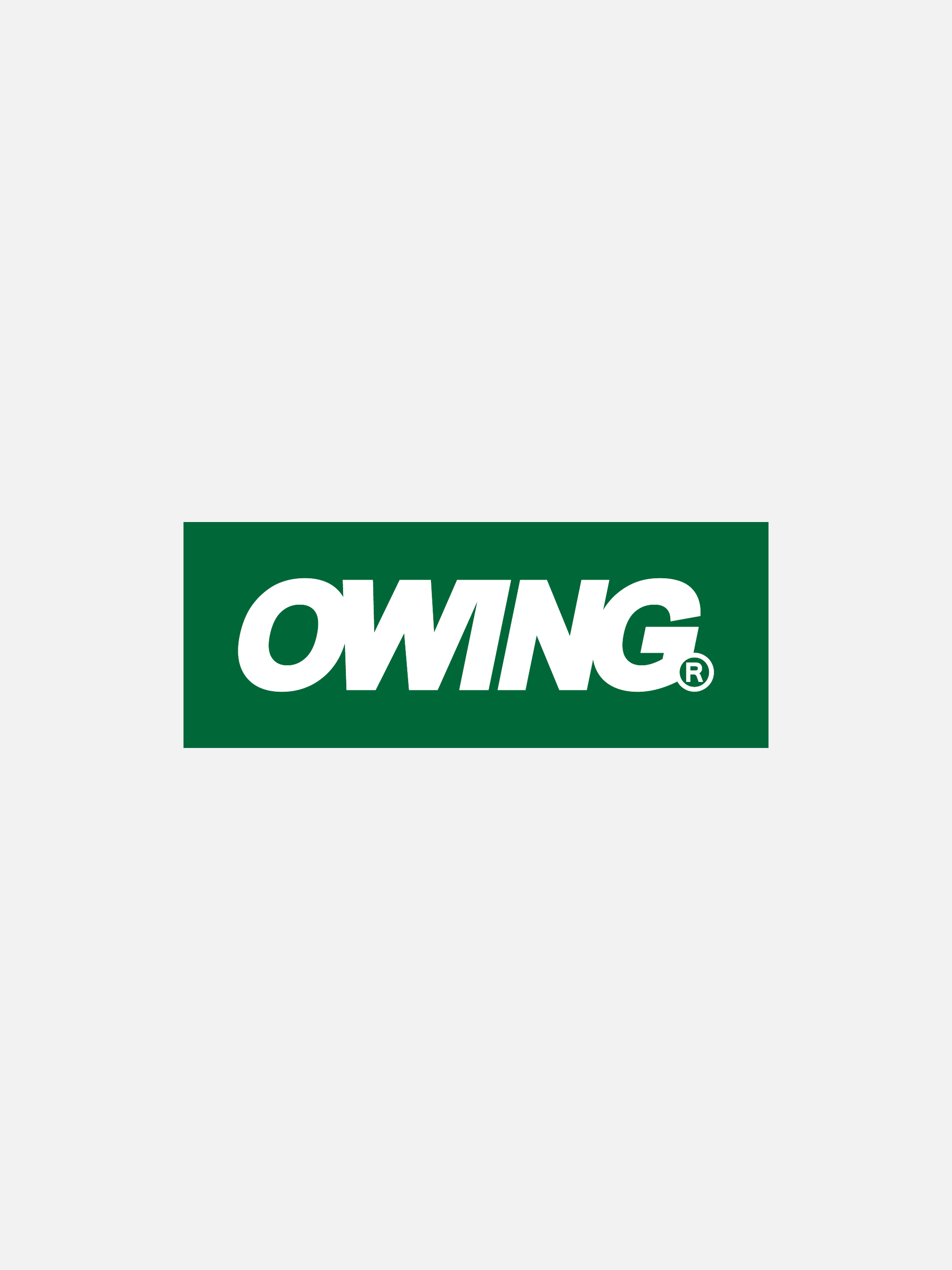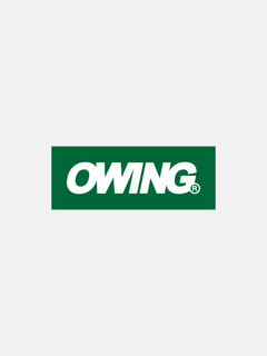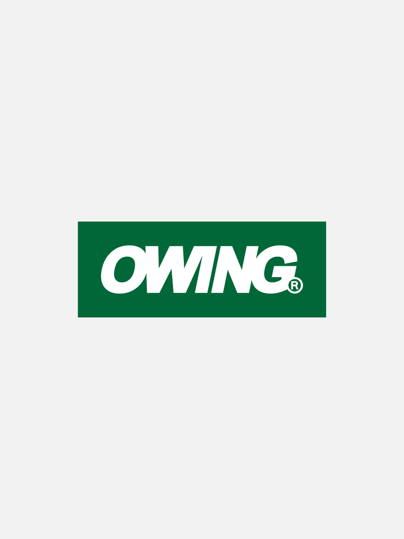 Vinyl bumper sticker featuring registered Owing shop logo.